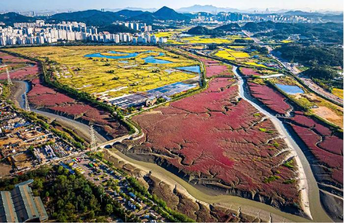 또 8000년 세월이 빚어낸 사행성 급경사 갯골은 전국 어디에서도 보기 힘든 지형적 특성을 가진다. 가을철 붉은 카펫처럼 펼쳐지는 해홍나물, 나문재, 칠면초 등 염생식물 군락은 천연기념물급 경관을 자랑한다.