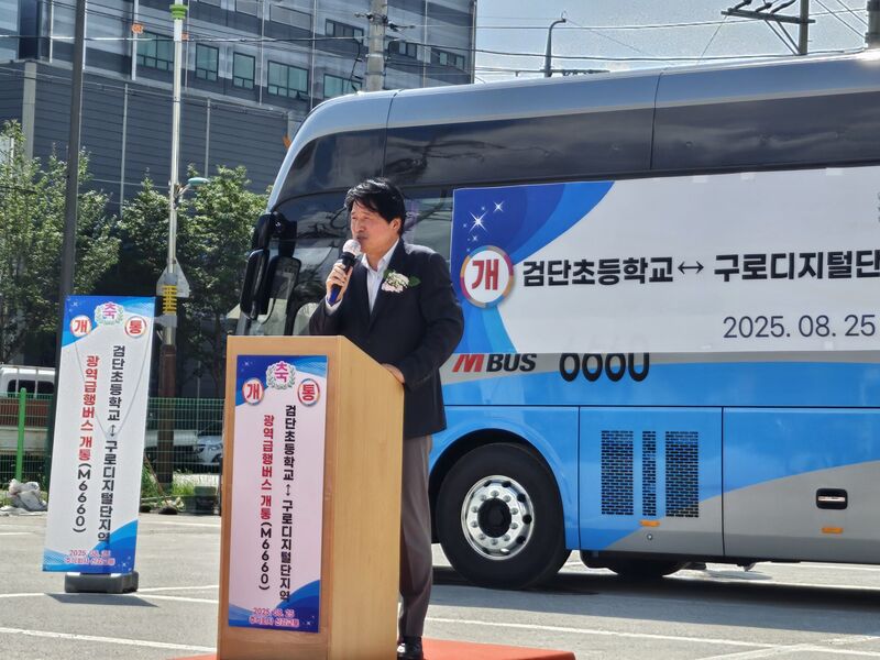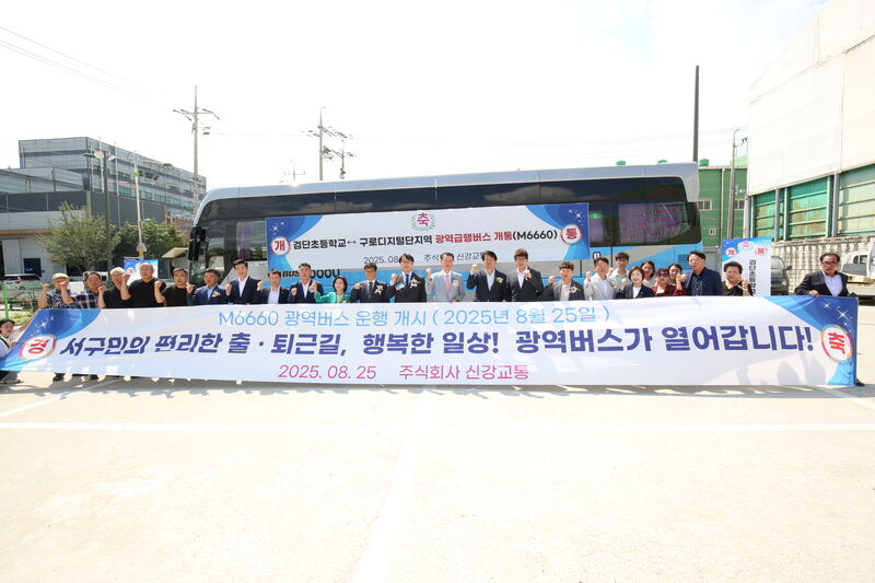 인천 서구(강범 서구청장)는 26일 서구 오류동 신강교통 차고지에서 광역급행버스 M6660번 노선 개통식을 개최했다고 밝혔다.새롭게 개통되는 M6660번은 서구 검단초등학교(기점)에서 서울 구로디지털단지역까지 운행하며, 환승 없이 연결된다.차량 4대를 우선 투입해 운행되며, 노선 개통 이후 서울 도심 접근성이 개선돼 출퇴근 시간대 혼잡 완화와 이동시간 단축 등 검단 주민들의 교통 편의가 강화될 것으로 기대된다.