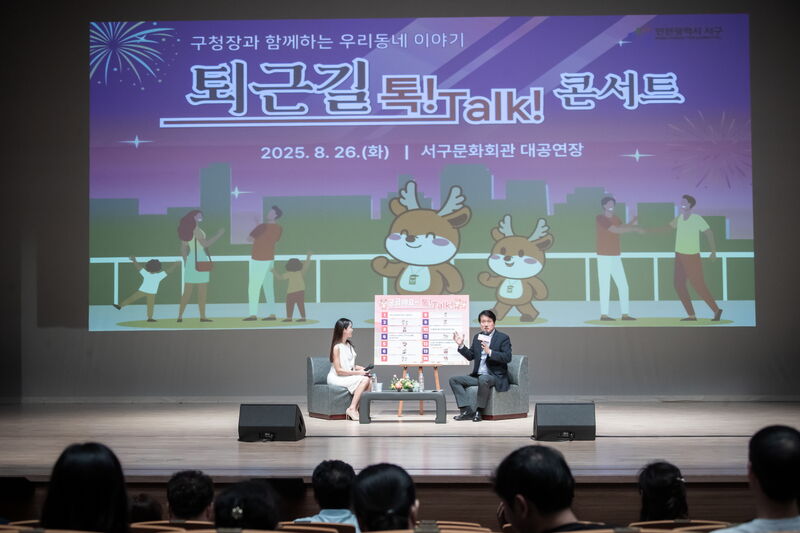 인천 서구(구청장 강범석)는 지난 26일 저녁 서구문화회관 대공연장에서 ‘퇴근길 톡! Talk! 콘서트’를 개최하여 가정, 신현원창, 석남, 가좌 주민 약 400명과 함께 특별한 소통의 시간을 가졌다고 27일 밝혔다.