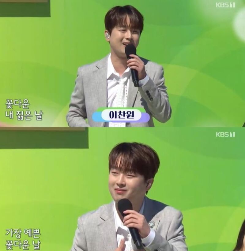 이날 ‘전국노래자랑’을 찾은 이찬원은 힘찬 인사와 함께 등장해 뜨거운 환호성을 자아냈다. 이찬원은 구성진 목소리로 ‘꽃다운 날’을 열창해 모두를 들썩이게 했다.