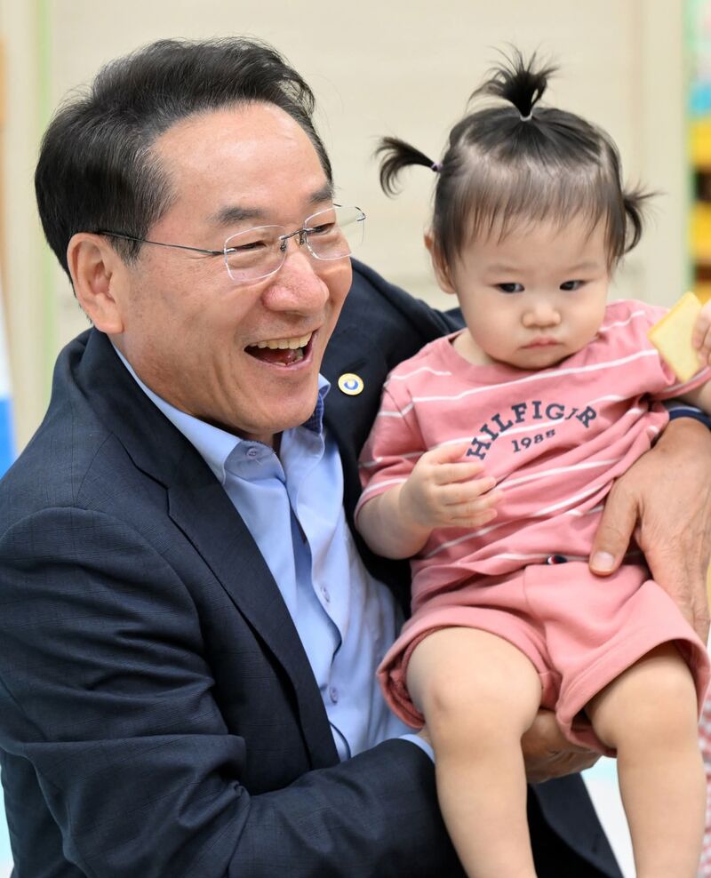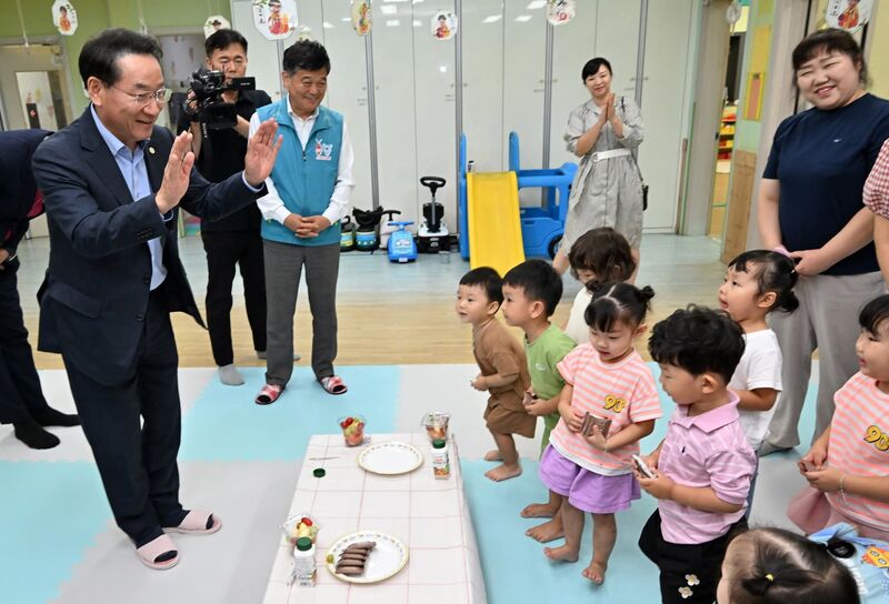 유정복 시장은 이날 ‘푸른바다 어린이집’을 찾아 아이들과 함께 시간을 보내며 따뜻한 인사를 나누고, 원장 및 보육교직원과 사업 운영에 대한 현장 의견을 청취했다.