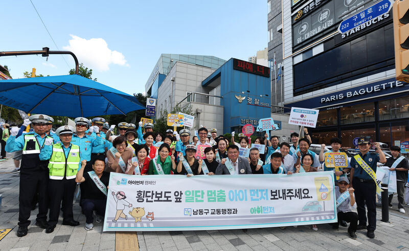 인천 남동구(구청장 박종효)는 9월 18일 목요일 구월동 정각사거리에서 2025년 기초질서 확립 및 아이먼저 캠페인을 실시했다고 밝혔다.