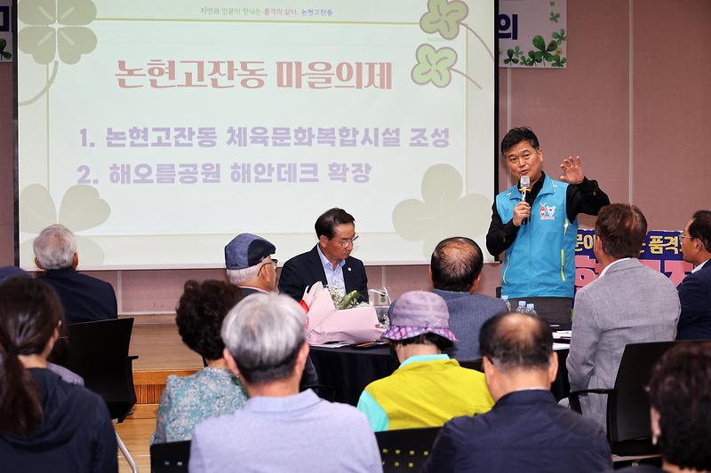 유정복 시장은 박종효 구청장과 신동섭 시의원 등이 함께 했다. 유정복 시장은 논현고잔동 해오름공원 해안데크 확장 등 마을의제에 대해 논의했다.