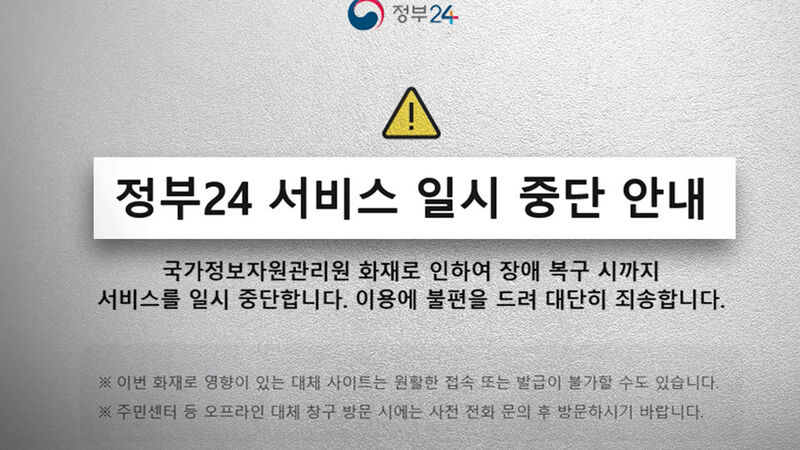 '민원 대란불가피 국정자원 화재로 국가전산망 먹통 나흘째…
