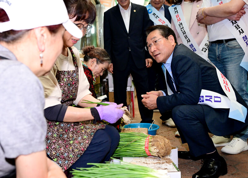 시장 현장의 분위기를 살피며 명절 물가 동향을 점검한 유 시장은 장바구니 부담이 큰 시기인 만큼 물가 안정에 지속적인 관심을 기울이겠다고 했다