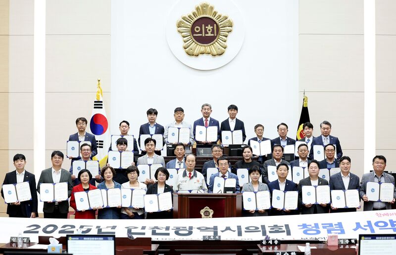 신동섭 시의원은 인천시의회 의원총회의실에서 청렴 문화 확산과 반부패 의지 함양을 위한 ‘2025년도 반부패·청렴 교육 및 청렴 서약식’에 참석 했다고 밝혔다.