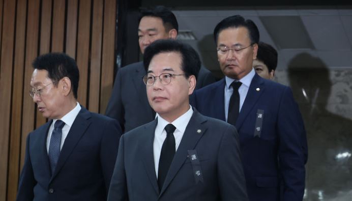 유상범 원내운영수석부대표는 "어제 민주당은 15일로 연기됐던 운영위원회 국정감사 증인채택을 위한 전체회의를 일방적으로 연기했다. 김현지 대통령실 제1부속실장의 증인채택 여부가 논란이 될 것을 피하기 위해"라고 했다.