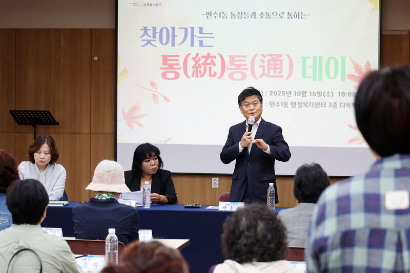 인천 남동구(구청장 박종효)는 10월 15일(수) 만수1동 행정복지센터에서 찾아가는 통(統)! 통(通)! DAY 간담회를 개최했다.