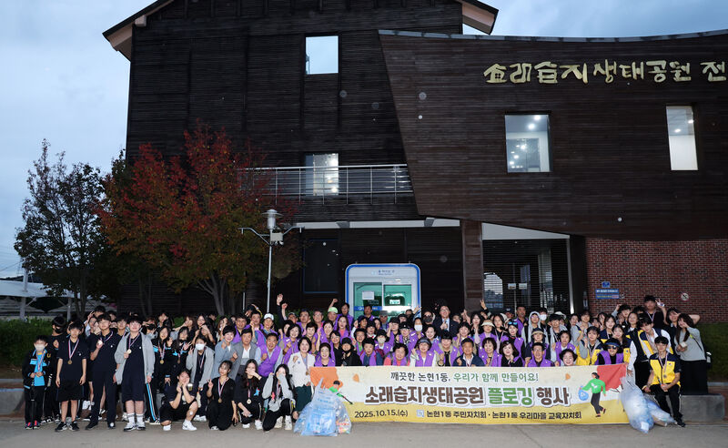 인천 남동구(구청장 박종효)2025.10.15.(소래습지생태공원에서 논현중학교 학생들과 함께 플로깅(조깅하며 쓰레기 줍기행사를 참여했다.