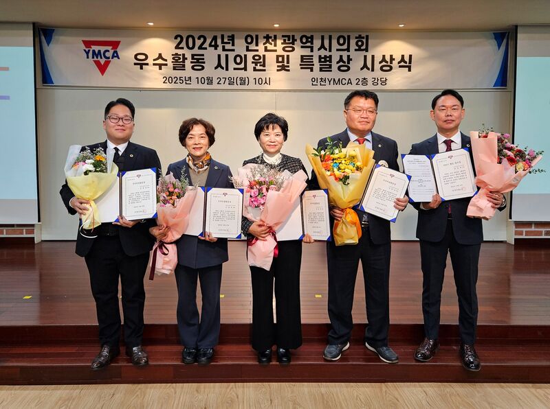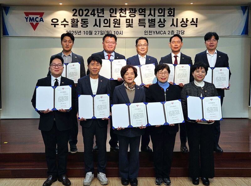 인천시의회 우수 시의원 10월 27일 월요일 인천YMCA에 강당에서 인천시의회 우수의정활동상을 받았다고 밝혔다.