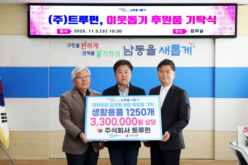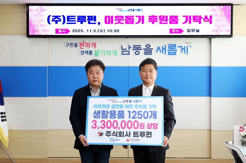 박종효 남동구청장은 “어려운 이웃을 위해 따뜻한 나눔을 실천해 주신 ㈜트루펀에 깊이 감사드린다”라며 “기탁한 물품은 꼭 필요한 분께 소중히 전달하겠다”라고 말했다.