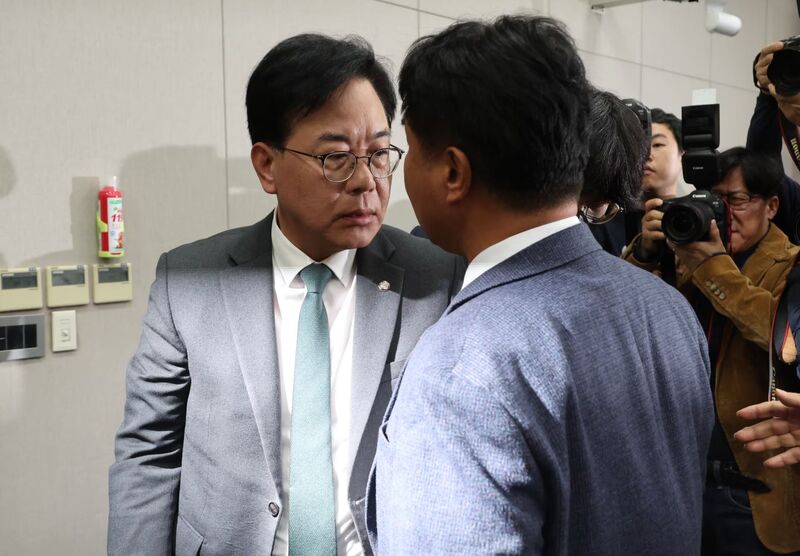 민주 이기헌 & 국힘 송언석 원내대표 · 대통령실 국감서 “ 하다하다 '배치기' 까지 - 이 의원이 육중한 몸집으로 다가오더니 저는 회의장을 나가려다 돌아선 상태인데 그대로 몸을 부딪혔다"며 "국회선진화법 이후 회의장 내 어떤 물리적 접촉이나 폭력 행위도 금지됐지만 불행…