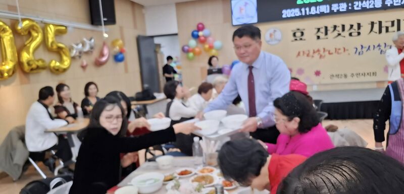 신동섭 시의원은 2025 간석2동 주민자치회 효(孝) 잔칫상 차리기 행사에 참석하여 어르신들을 정성껏 모셨다고 밝혔다.