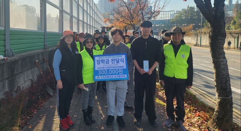 박정화 자연보호 명예회장 일년동안 꾸준히 참여해준 도림고등학교 보건동아리에 장학금지급함.
