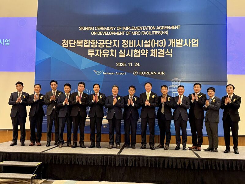 대한항공은 그랜드 하얏트 인천에서 인천국제공항공사와 ‘첨단복합항공단지 정비시설(H3) 개발사업 실시 협약’을 체결했다고 오늘 밝혔다.