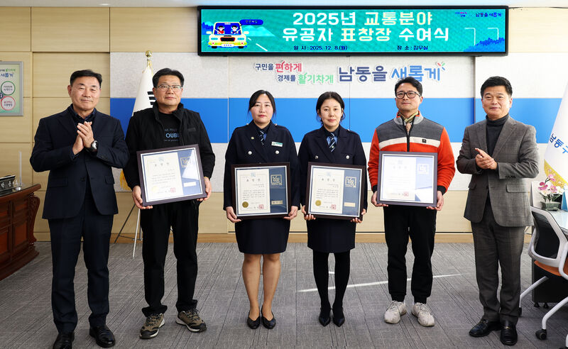 인천시 남동구는 구청장 집무실에서 ‘2025년도 교통 분야 유공자 표창 수여식’을 열고, 안전하고 편리한 남동구 교통 환경 조성에 헌신한 유공자들에게 감사를 전했다고 9일 밝혔다.