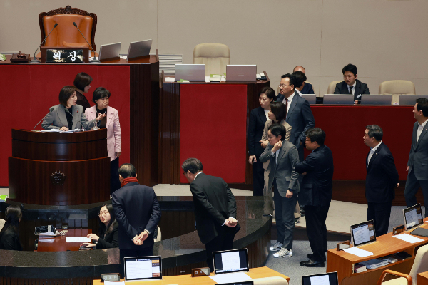 국회가 본회의를 열고 64건의 법안을 처리할 예정이었지만 필리버스터(무제한 토론) 허용 여부를 놓고 파행했다. 우원식 국회의장은 국민의힘 나경원 의원이 필리버스터를 시작한 지 10여 분 만에 마이크를 껐고 국민의힘은 “민주당 출신 의장의 의회 독재”라고 반발했다.