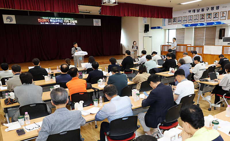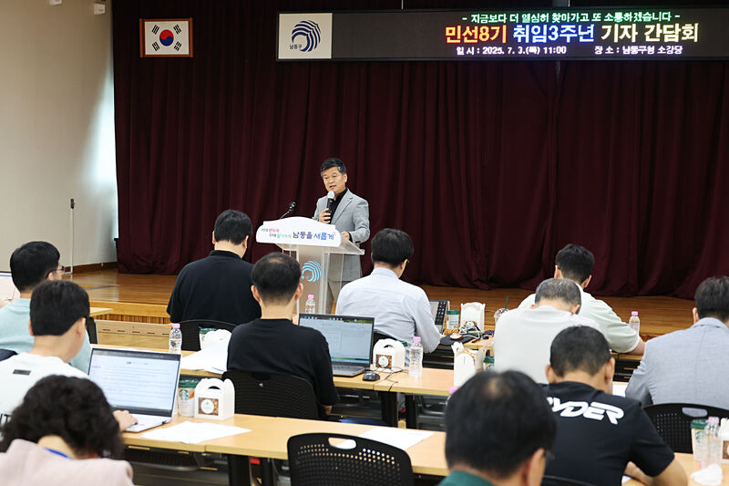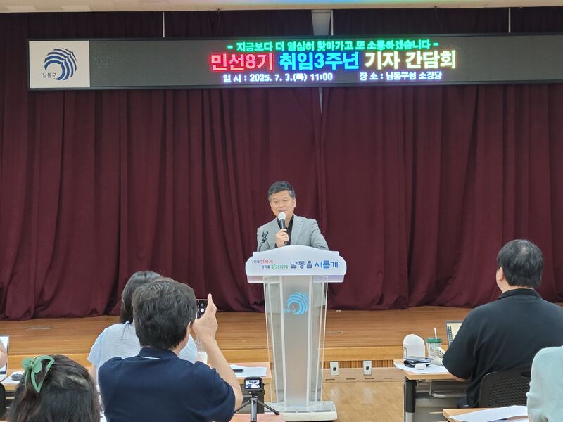 박 구청장은 구청 소강당에서 열린 기자간담회에서 “지난 3년간 구민이 체감하는 변화를 최우선 가치로, 남동구의 지속 가능한 발전을 위한 기반을 다지는 데 주력했다”라고 말했다.