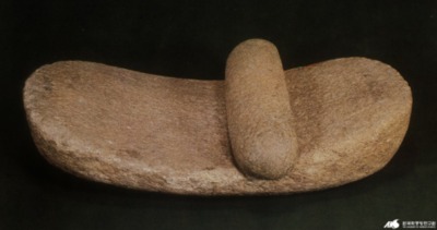 <사진> 갈돌과 갈판 : 곡물을 쓿어 겉껍질을 벗기거나 빻아서 가루를 내는데 쓰는 연장