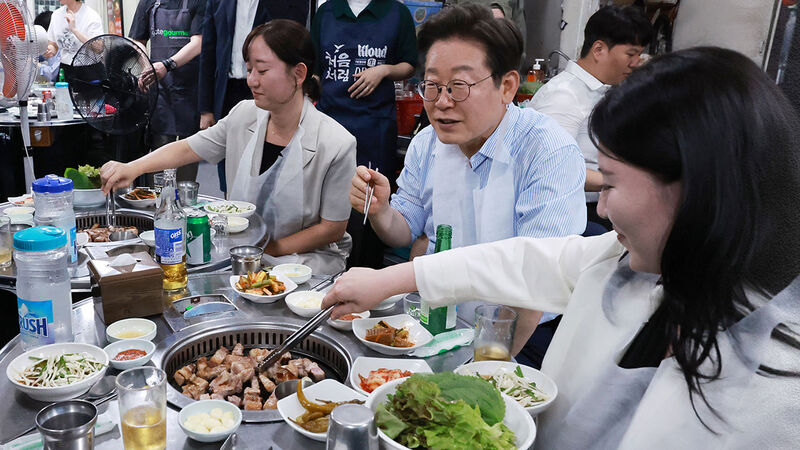 이재명 대통령, 오겹살 외식 후