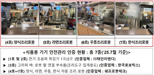 조리로봇 4종, 식품용 기기 안전관리 인증…글로벌 위생기준 확보 - 양식·한식·라면·우동 자동 조리로봇 포함 총 7종 인증 완료 - 퀴즈 이벤트도 진행…국민 인식 제고 및 식품안전 홍보 강화