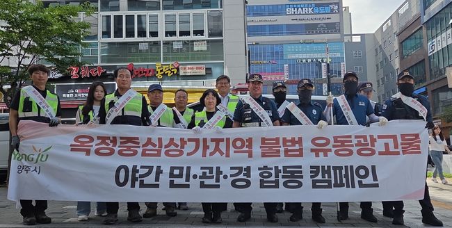 양주시는 지난 15일 옥정신도시 중심 상가지역에서 경기도북부경찰청과 함께 불법광고물 정비를 위한 관·경 합동 캠페인을 전개하며 시민 보행안전과 도시 미관 개선에 나섰다고 밝혔다.