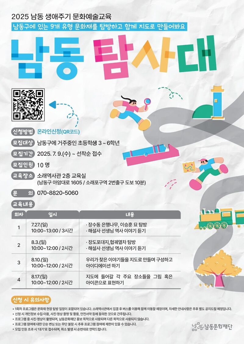 우선 남동 탐사대는 남동구 9개 유형 문화유산을 중심으로 한 초등학생 대상 역사 탐방 및 지도 만들기 프로그램이다.