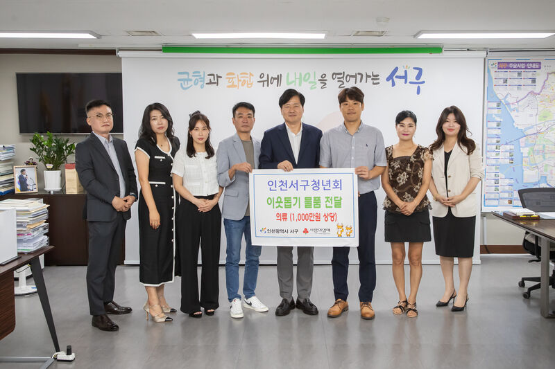 인천 서구(구청장 강범석) 22인천서구청년회(회장 김상봉)로부터 소외계층을 위한 약 1,000만 원 상당의 의류를 전달받았다