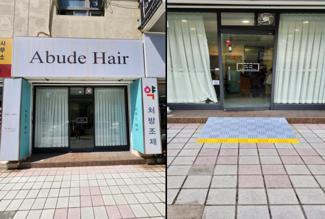 미용실 입구에 맞춤형 경사로 설치를 한 모습.