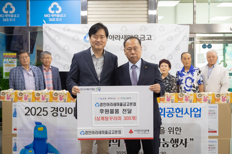 인천 서구(구청장 강범석)는 경인아라새마을금고(이사장 심성래)가 취약계층 이웃을 위한 삼계탕꾸러미 300개를 서구복지재단에 지정 기탁했다고 1일 밝혔다.