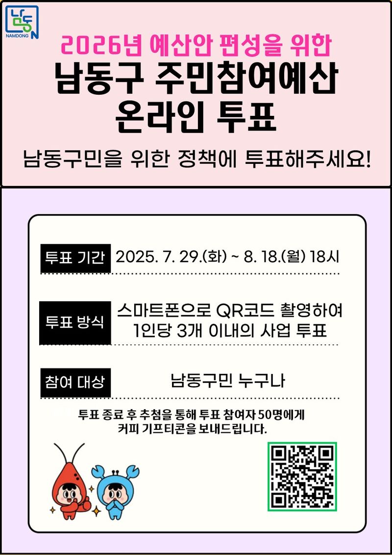 투표 결과는 남동구의 예산안 편성에 참고 자료로 활용되며, 2026년 예산 반영 여부는 12월 말에 남동구 의회의 예산안 의결 후 공개될 예정이다.