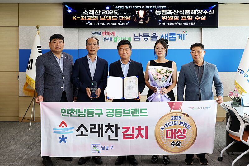 인천시 남동구(박종효 구청장)는 김치 공동브랜드인 소래찬이 2025 소비자선정 최고의 브랜드 대상에서 K-푸드 부문 대상을 수상했다고 5일 전했다.