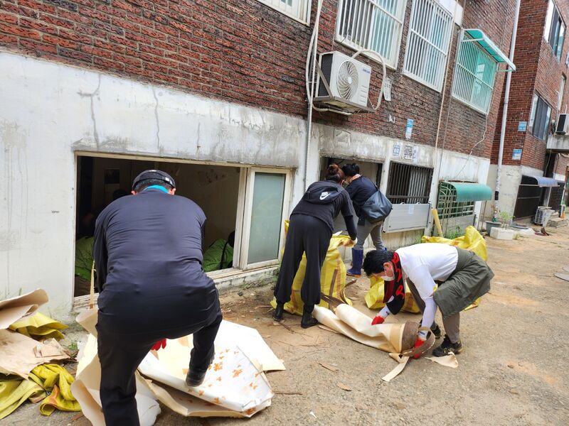 이들은 주택가로 흘러 들어온 토사와 각종 수해 쓰레기를 정비하는 등 피해 주민들이 생활 터전으로 빠르게 복귀할 수 있도록 돕고 있다.