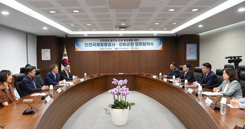 인천국제공항공사는 지난 25일 공사 회의실에서 강화군과 '공항 인근지역 관광 활성화 및 지역경제 발전 협력을 위한 업무협약'을 체결했다고 26일 밝혔다