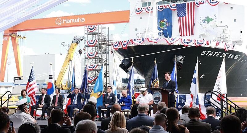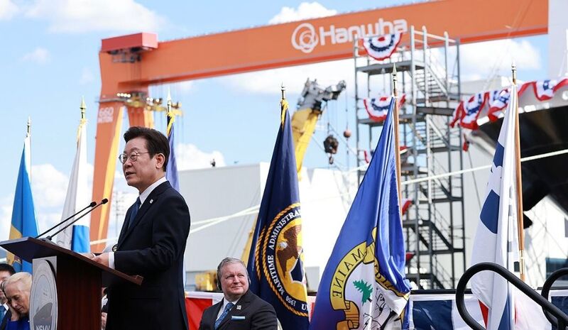 이 대통령은 축사에서 "대한민국의 조선업이 미국의 해양 안보를 강화하고 미국 조선업 부활에 기여하는 새로운 도전의 길에 나선다""마스가 프로젝트로 미국과 대한민국 조선업이 더불어 도약하는 '윈윈성과를 만들어낼 것"이라고 강조했다.