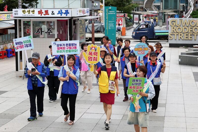 참석자들은 유동 인구가 많은 구월 로데오 거리에서 어깨띠를 착용하고 구민들에게 폭력 예방의 중요성을 알렸다.