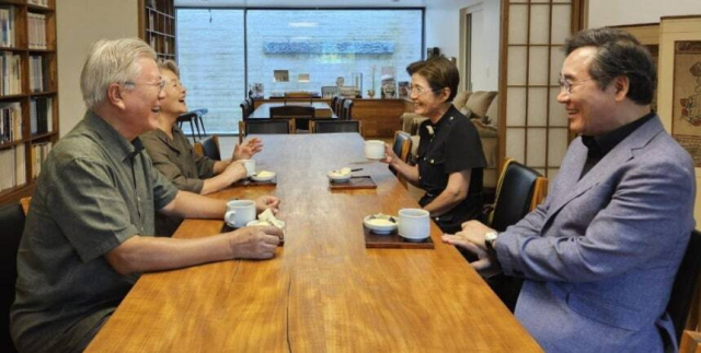 지난 대선에서 김문수 국민의힘 후보를 지지했던 이낙연 새미래민주당 상임고문이 양산 평산마을에서 문재인 전 대통령 부부와 만나 화기애애한 시간을 갖는 모습을 공개했다.