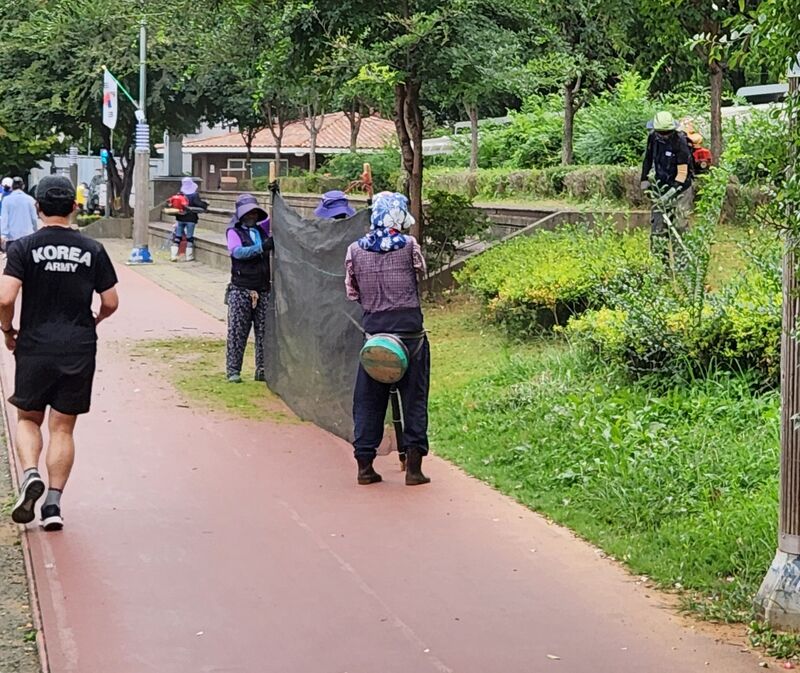 더불어 구는 농구대 꼴망 수선공원 잡초를 제거하여 쾌적한 환경을 조성하였습니다.