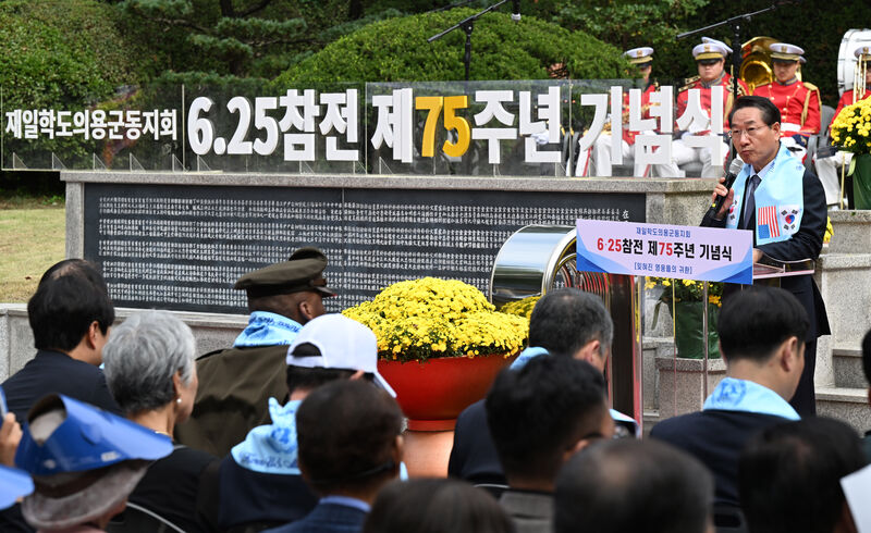 이재명 대통령은 축사를 통해 "대한민국은 조국의 자유와 평화를 수호하기 위해 젊음을 바친 재일학도의용군의 고귀한 희생과 헌신을 영원히 기억할 것"이라며 "전쟁 걱정 없는 나라, 평화롭고 안전한 나라를 반드시 만들겠다"고 전했습니다.