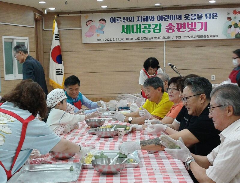 박종효 남동구청장은 그리운 가족과 헤어져 생활하는 사할린 동포들과 이야기 나누며 어린시절 부모님과 함께 전통음식을 만들던 때를 추억하며 제2의 고향인 한국의 명절 음식인 송편을 통장들과 함께 만들었습니다.