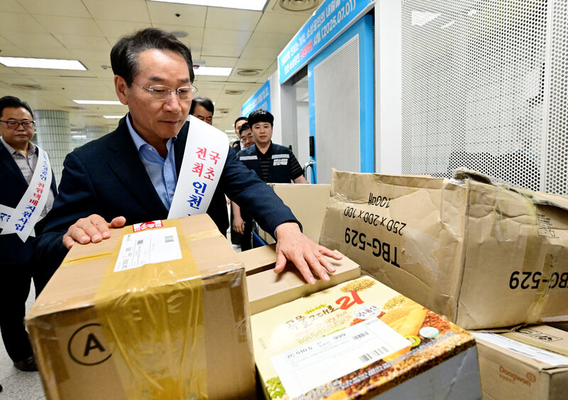 부평구청역에 마련한 소상공인 천원택배’ 집화센터를 찾아 택배 운영 현황을 보고 받았다.‘반값택배로 시작해 올 7월부터 가격을 더 낮추고 명칭을 바꾼 이 사업은 시민이 역사에 맡긴 물품을 1000원에 배송해주는 소상공인 지원 정책이다
