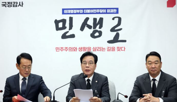 유상범 원내운영수석부대표는 "어제 민주당은 15일로 연기됐던 운영위원회 국정감사 증인채택을 위한 전체회의를 일방적으로 연기했다. 김현지 대통령실 제1부속실장의 증인채택 여부가 논란이 될 것을 피하기 위해"라고 했다.