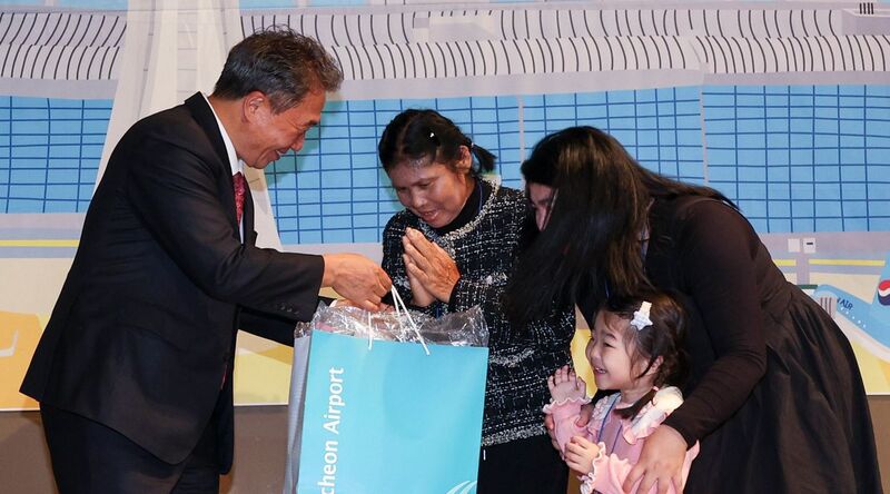 이학재 사장 인천국제공항공사 다문화가족 환영행사서 국가별 대표 가정에게 기념품 전달