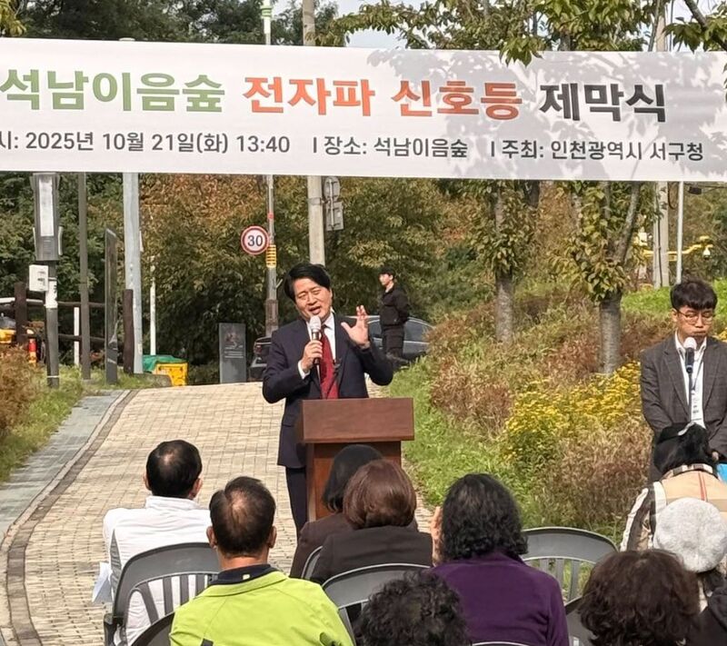 인천 서구는 석남이음숲에서 전자파 신호등 제막식을 성공적으로 마쳤다고 23일 밝혔다.