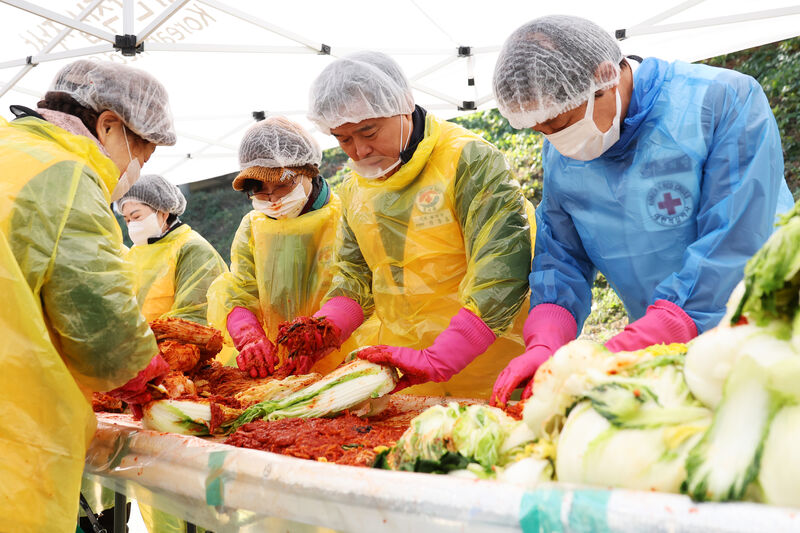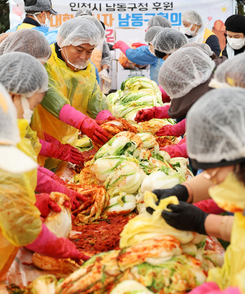 인천 대한적십자 남동구협의회에서 적십자 봉사원들이 사랑의 김장김치 나눔 행사에 참가해 김장을 담갔다. 이날 담근 김장 김치 남동구 관내 홀몸 어르신, 한부모가정, 조손가정 등 취약계층 가구에게 전달된다.