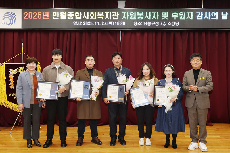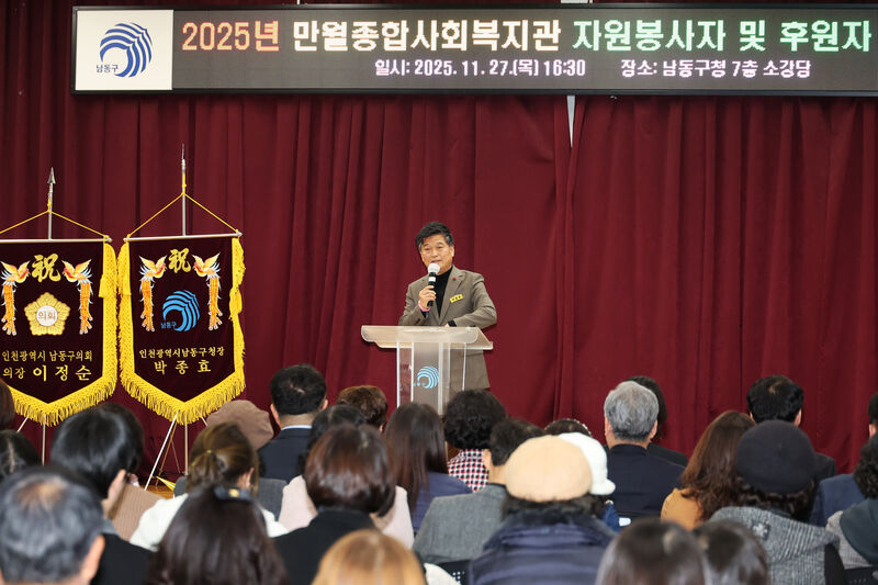 인천 남동구(구청장 박종효)는 11월 27일(목) 구청 소강당에서 열린 2025년 만월종합사회복지관 자원봉사자 및 후원자 감사의 날 행사에 참석했다.