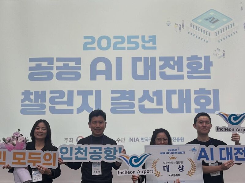 인천공항공사는 지난 3일 청주 오스코에서 열린 ‘2025년 공공 AI대전환 챌린지 우수사례 왕중왕전’에서 대상인 ‘국무총리상’을 수상했다고 5일 밝혔다.