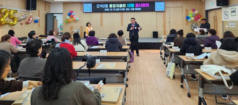 간석2동 통장자율회 회원 35명으로 구성돼 있다. 2025년 남동구 마을만들기 공모 사업에 선정되었다. 간석2동 통장자율회는 올 겨울에도 300kg의 김장김치,간소한 밥상 공동체는 어르신 생신상 차리기 활동등 다양한 공동체 활동을 하며 모범을 보이고 있다.
