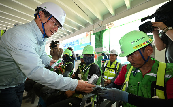 유 시장은 연일 계속되는 폭염 속에서도 묵묵히 현장을 지키는 근로자 여러분 덕분에 인천의 미래가 착실히 준비되고 있다, “무더위 속에서도 근로자들이 안전하게 일할 수 있도록 충분한 휴식과 냉방건강 보호조치 등 현장 안전관리에 만전을 기해달라라고 당부했다.