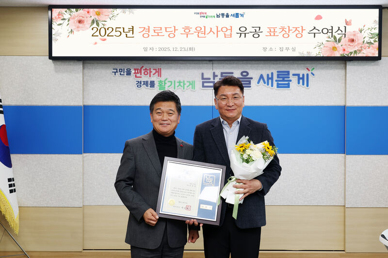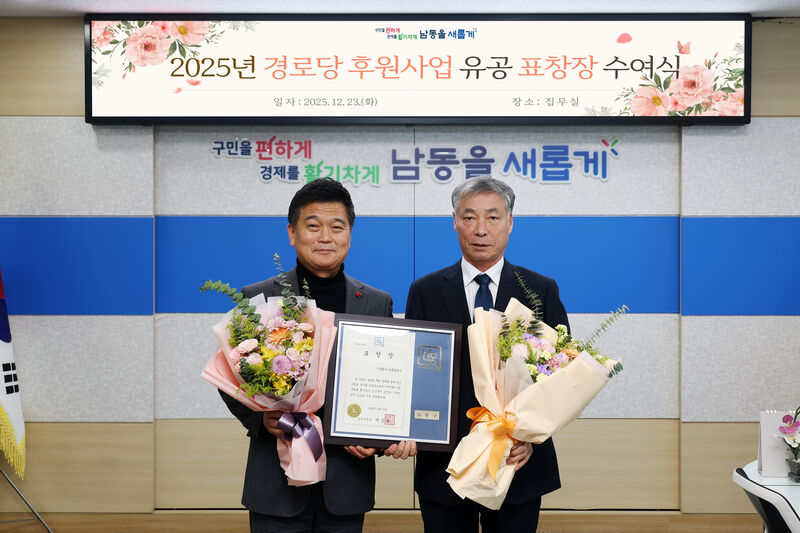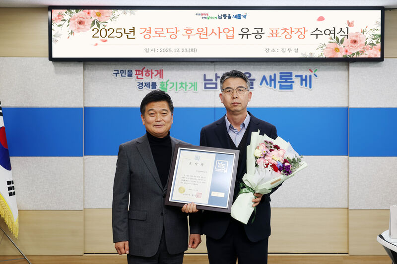 인천 남동구(구청장 박종효)는 12월 23일(화) 구청 집무실에서 2025년 경로당 후원사업 유공 표창장 수여식을 개최했다.
